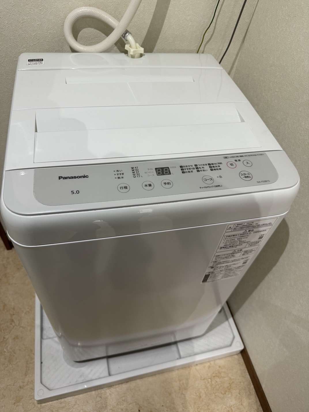 洗濯機は本体にシールされて記載しているところに
